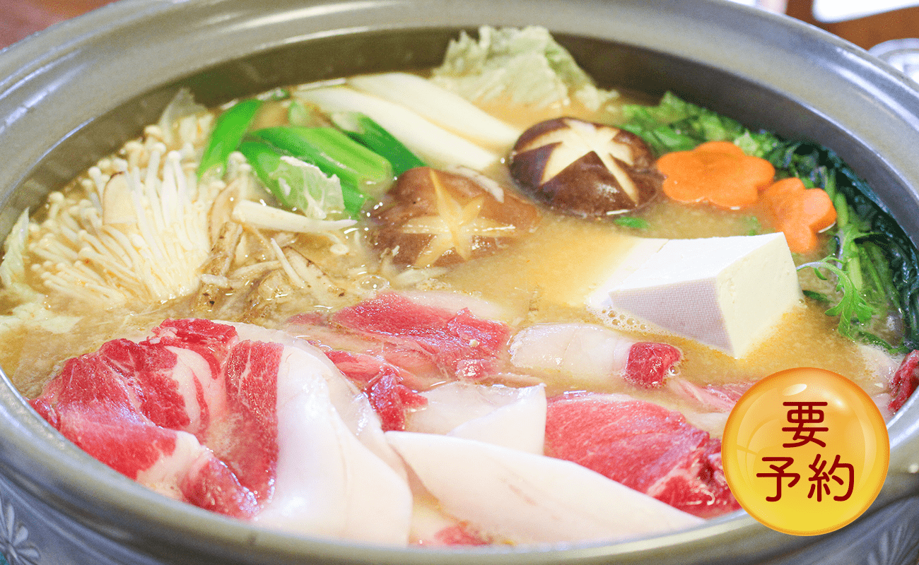 こちらのぼたん鍋セットは、極上のロースとバラの2種類の部位が愉しめます。猪肉は店主が独自の仕入れルートを持っており、良質の猪肉が仕入れ可能。みそ仕立てのスープに良質の猪肉、地元の新鮮野菜など見た目も味も間違いなく絶品です。お鍋以外にも一品料理、お蕎麦等がついてボリューム満点です。